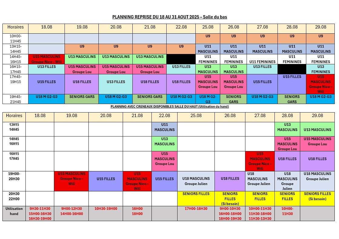 PLANNING DES ENTRAINEMENTS